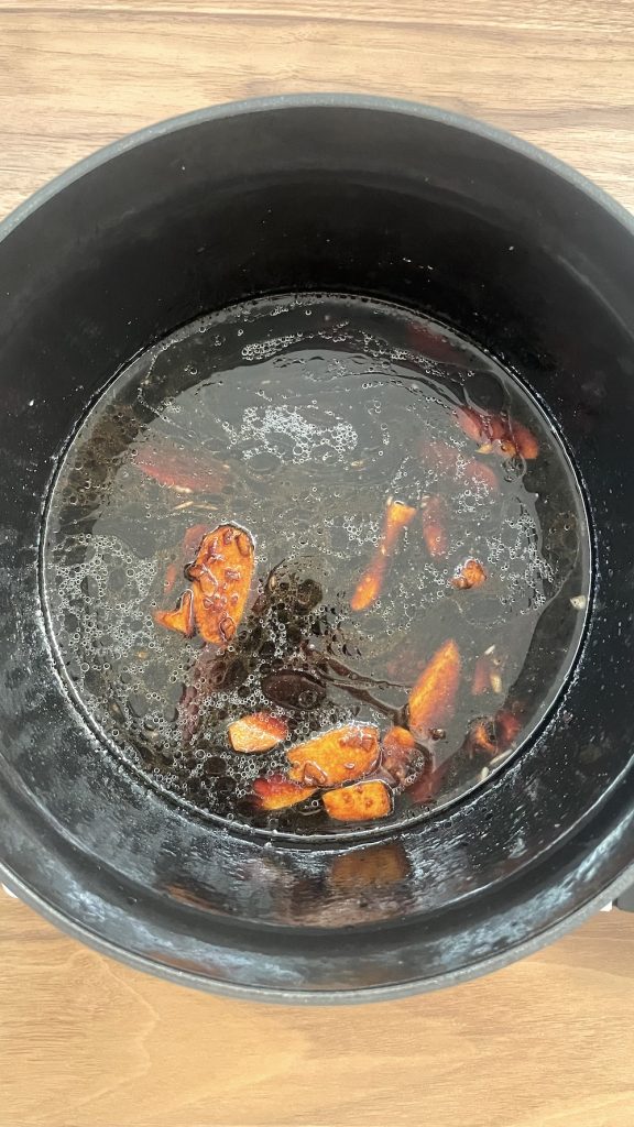 - Turn of the heat once the liquid is 20% left and the riblets glister. (see the last photo)